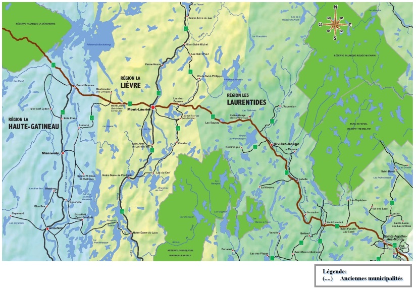 | Le territoire du diocèse de St-Jérôme-Mont-Laurier regroupe plusieurs paroisses sur une grande étendue géographique. |